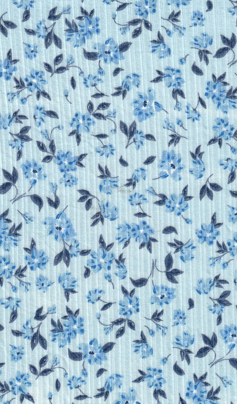 Light Blue Ribbed Knit with Blue Flowers