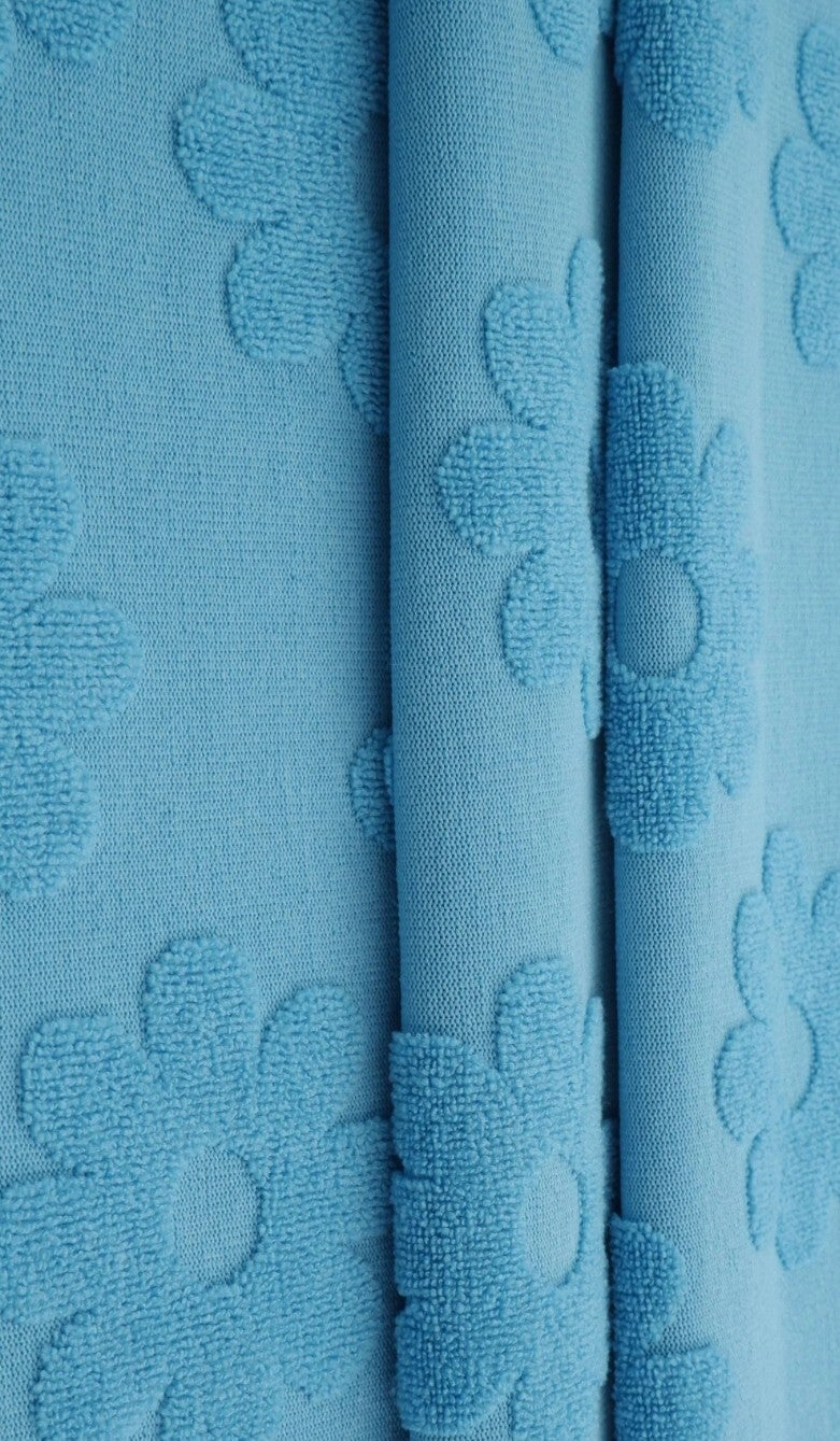 Towel Daisy Floral Jacquard Knit. Stretches across fabric. Med weight
